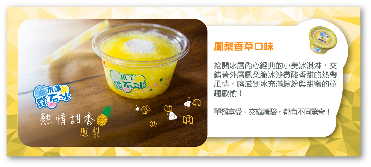 又到了可以暢意享受吃冰樂趣的季節啦,一起來感受小美鑽石冰多重口感交錯的酷炫滋味,填空寫下你心目中的形容神句、與喜愛的口味,就有機會抽中獲得多份小美鑽石冰,盡情享受與分享酷涼暢快!