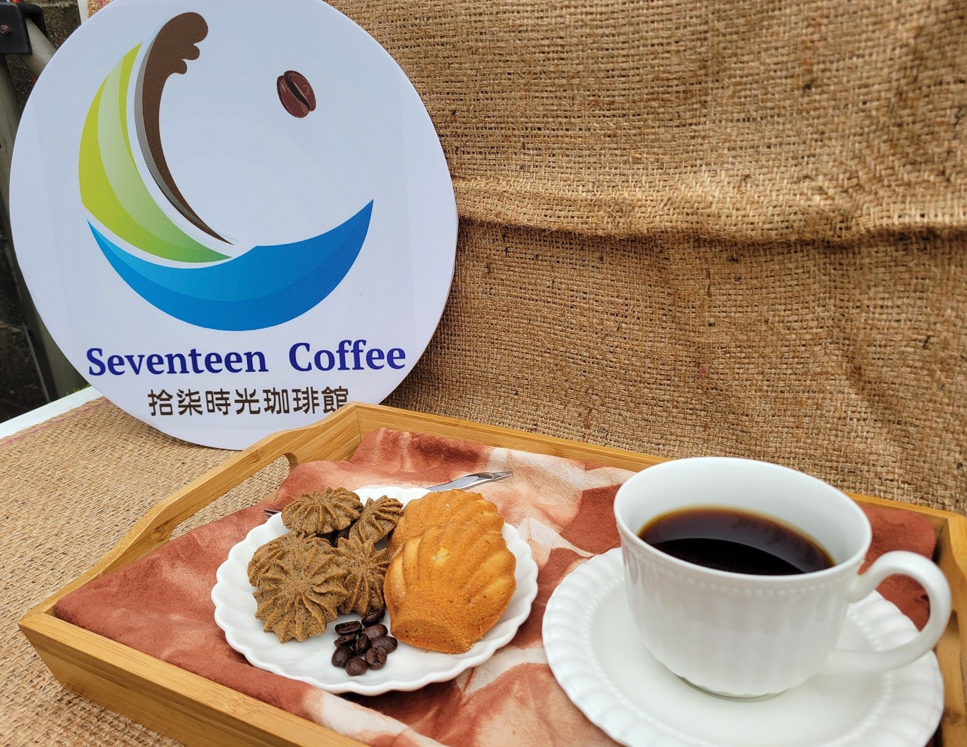 古坑手敖鳳梨醬入餡的瑪德蓮,內層柔軟細緻,鳳梨果香甜而不膩;搭配加入現磨古坑咖啡原豆的拾柒咖啡曲奇,減糖配方仍保留咖啡濃郁酥香;再配上一杯手沖古坑大尖山精品咖啡,讓您在午後也能享受專屬古坑的小確幸與甜蜜滋味。