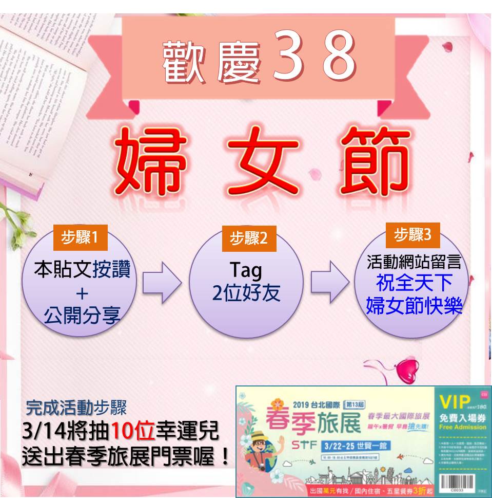 完成以上活動步驟,將會抽出10位幸運兒,有機會抽「2019台北國際春季旅展免費入場門票」(1組2張)共10組。