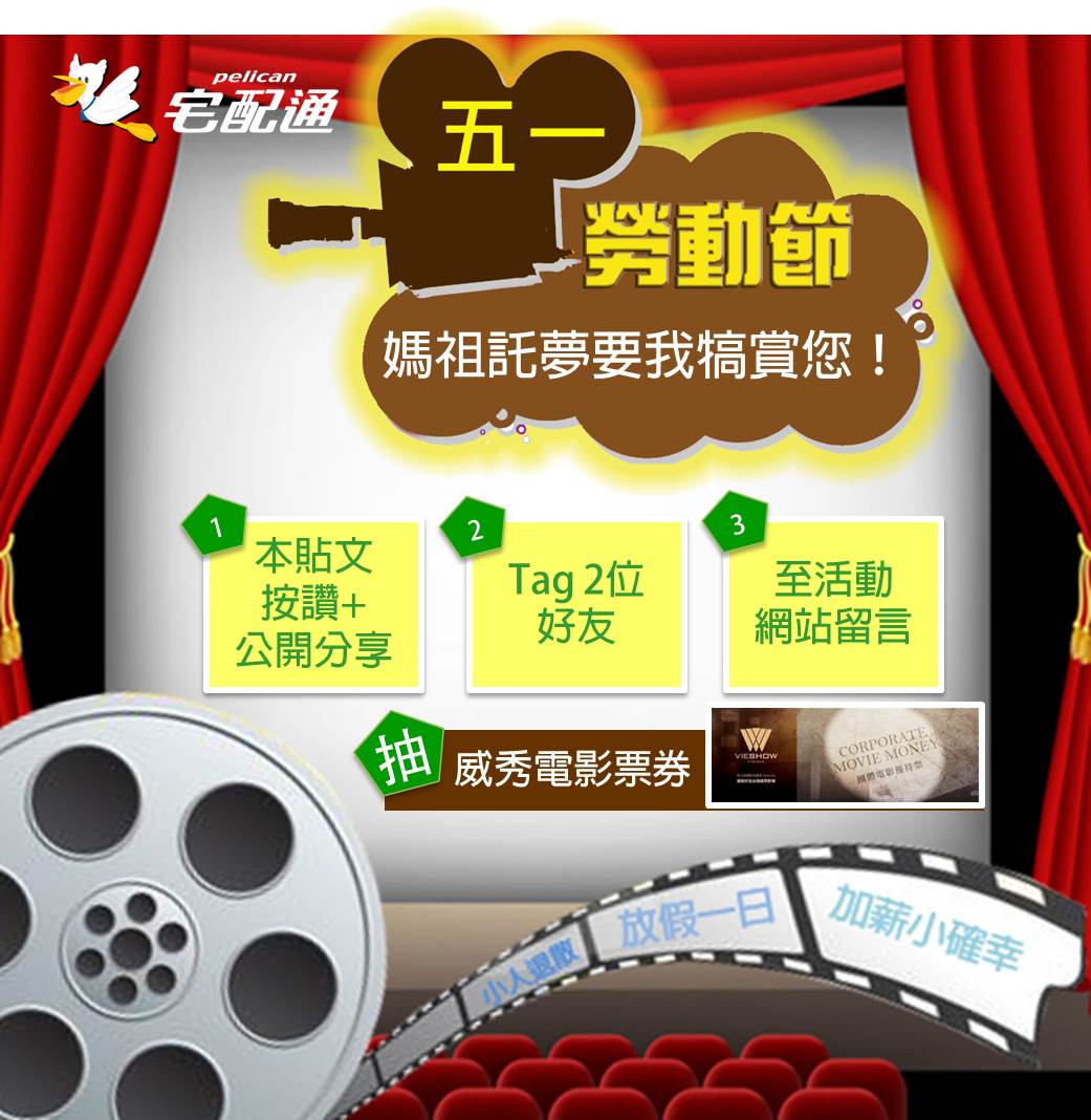 3.本活動網站留言【五一勞動節 媽祖託夢要我犒賞您看電影】。