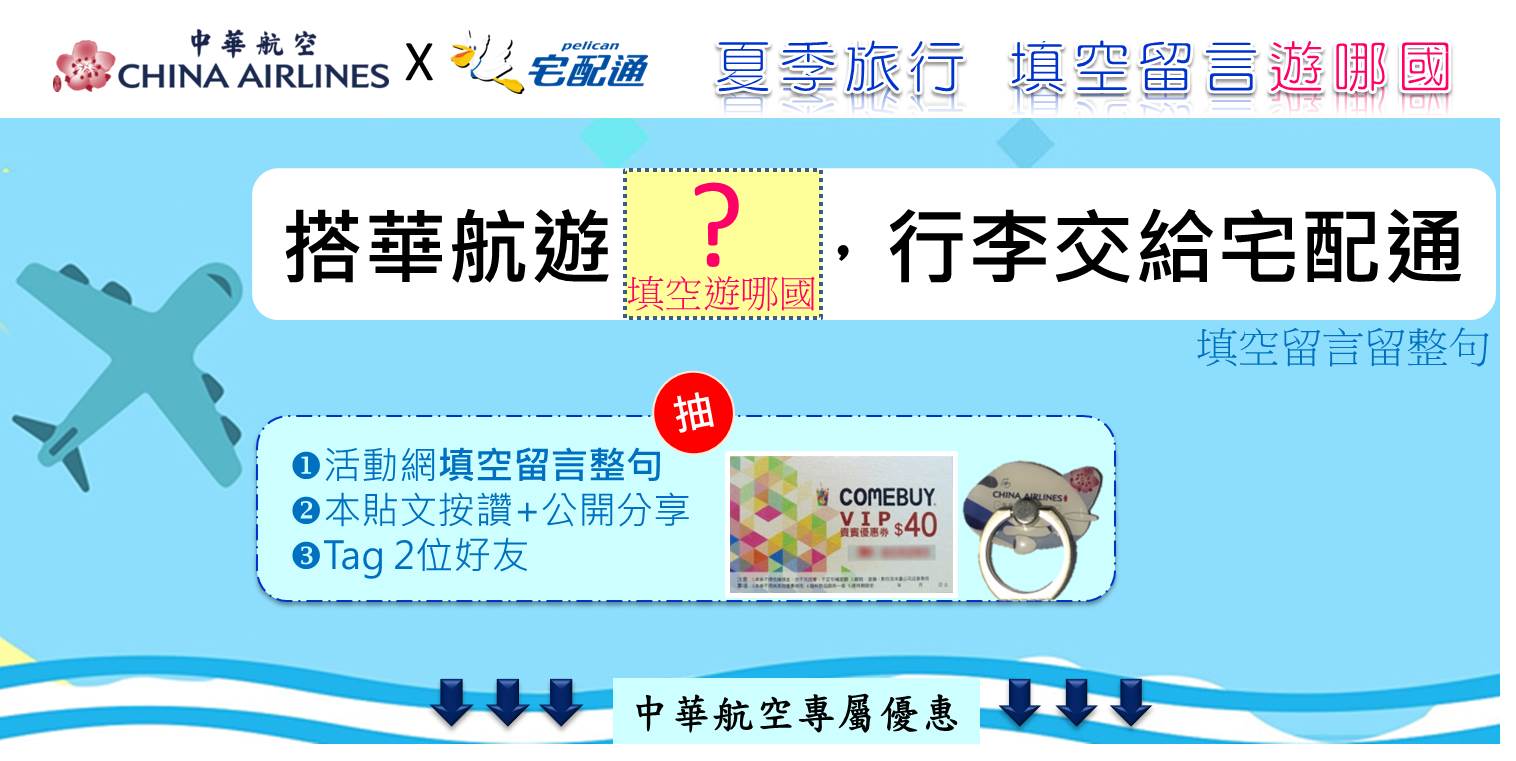 填空留言告訴小編「搭華航遊哪國,行李交給宅配通」