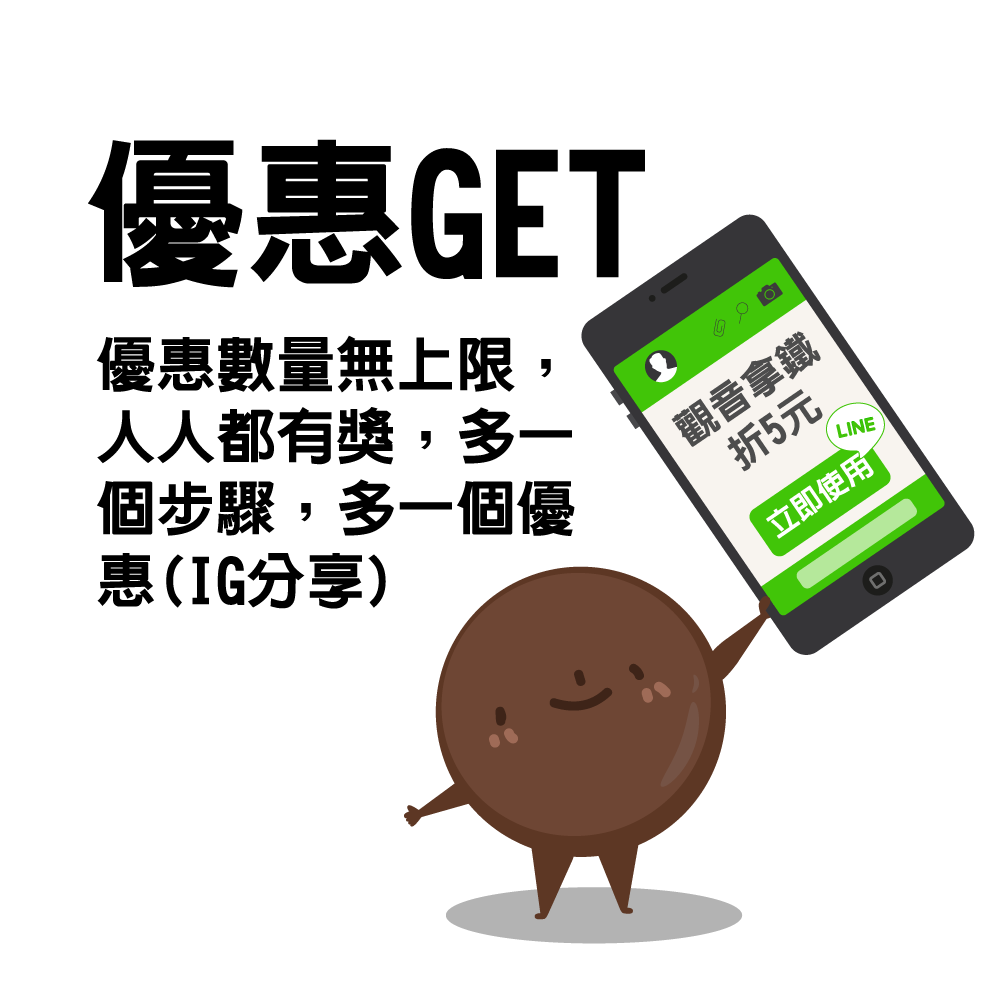 優惠1:上傳【特效照片】,立刻獲得 【觀音拿鐵】優惠券